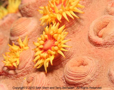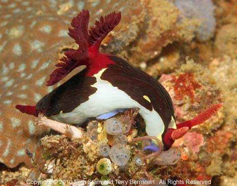 | Description: | Nudibranch (Nembrotha) feeding on sea squirts (Clavelina). |